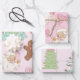 Feuille De Papier Cadeau Pastel Pink Christmas Trees Bows Holiday