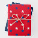 Patriotique rouge blanc et bleu étoiles motif moderne assortiment de cadeaux enveloppant feuilles de papier. Idéal pour les anniversaires, les cadeaux de Noël et de Noël. Ensemble de 3 variations de couleurs différentes. Idéal pour célébrer le 4 juillet, fête de l'Indépendance, fêtes de fin d'année. Vérifiez que le reste de la collection correspond aux éléments de coordination correspondants.