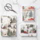 Cet ensemble comprend la coordination des feuilles de papier d'emballage avec une scène de Noël boisée rustique. Forêt enneigée avec camion vintage classique, pins couverts de neige et maisons rouges avec une touche festive.