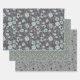 Belle aquarelle motifs floraux Impression à partir de Studio Posies. La palette de couleurs est composée de bleu-gris, gris, noir sur arrière - plan gris fusain. Le deuxième papier dans le trio est feuille bleu sur gris et le troisième est un motif blanc gris bleu. Un très bel ensemble de papiers d'emballage pour mariages, douches, anniversaires et même do-it-yourself projets de décoration maison. Dessins de l'artiste Jenn Steffen.