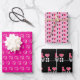 Pickleball hugs and kisses XOXO Valentine's Day gift wrap wrapping paper for the pickleball lover. Pink, black, and white hugs and kisses XOXO, where the Os are pink pickleballs, hot pink with pale pink pickleballs and white hearts, and LOVE spelled with pickleball equipment - paddles, courts, balls, and nets.