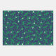 Feuille De Papier Cadeau Pigeons verts sur bleu