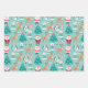 Feuille De Papier Cadeau Pingouins de Noël, Snowmen, Père Noël en vert