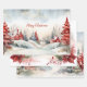 Cet ensemble de trois feuilles de papier d'emballage cadeau a des scènes de Noël vintage d'aquarelle similaires, mais pas identiques, des maisons de campagne rustiques, des pins rouges et verts et des ornements fantaisistes dans un paysage boisé. Le script "Joyeux Noël" est modifiable. Vous pouvez partir tel quel, ou changer un ou plusieurs en un bref message d'accueil ou de message, ou votre nom de famille et votre date. Si vous préférez, vous pouvez supprimer entièrement le message de bienvenue de la scène.