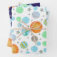 Feuille De Papier Cadeau Planètes et soleils bleu premier voyage