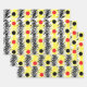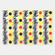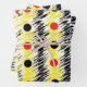 Feuillets de papier à Motif Abstrait Polka Dot Scribble conçus par Nisha Prabhu CuteHomeGifts. Motif abstrait coloré avec griffes à rayures verticales noires et pois de couleur rouge noir sur arrière - plan jaune.