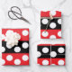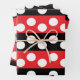 Feuilles de papier d'enveloppement à points Polka rouges et noirs conçues par Nisha Prabhu CuteHomeGifts. Motif à pois blanc rayé rouge et noir.
