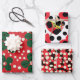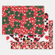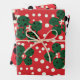 Un ensemble de papiers d'emballage motifs 3 pointillés en rouge, noir et vert foncé. Il s'inspire de designers modernes comme Yayoi Kusama. C'est un choix élégant mais coloré.