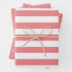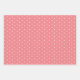 Cet ensemble de feuilles de papier d'emballage est composé d'une feuille de couleur saumon solide avec des feuilles de coordination de larges bandes saumons sur le blanc, et de pois blancs sur le saumon.