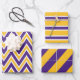 Feuille De Papier Cadeau Purple, Gold, and White Chevron & Stripe Pattern