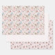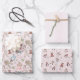 Ce papier d'emballage personnalisé de Noël pour bébé mignon de petite fille comprend 3 feuilles uniques : 1. Illustration dessinée à la main de pyjamas d'hiver, d'animaux farcis et de bibs accrochés sur une ligne de vêtements, contre un motif de costumes de pyjama de Noël, d'animaux peluches, de biberons, de bibs, de pacificateurs, de cadeaux et de minuscules étoiles jaunes. Nom et événement personnalisables. Élégant arrière - plan rose doux. 2. Motif rose pâle et blanc. 3. Illustrations à la main d'animaux en peluche d'hiver, de flocons de neige et de minuscules étoiles jaunes