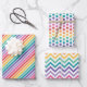 Un Arc-en-ciel coloré feuille de papier d'enveloppement série de rayures, Pois et Motif Chervon pour les anniversaires, ou Baby showers