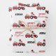 Une jolie illustration d'un camion tracteur rouge de Noël portant un chapeau de Père Noël et décoré de lumières de Noël remorquant une charrette remplie de cadeaux de Noël. Parfait pour les garçons et les filles qui aiment les tracteurs, les camions, les machines lourdes, l'agriculture ou tout simplement aimer jouer avec les camions jouets. Un papier d'emballage de Noël idéal pour les amateurs de camions tracteurs grands ou petits, filles ou garçons. Customisez le nom et faites-le vous-même.