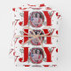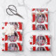 Red Joy avec baies Noël photo de vacances Wrapping Feuilles de papier. Il présente un motif du mot "JOY" en rouge avec des baies rouges et de la verdure tandis que, au lieu de la lettre "O", il y a votre photo.
