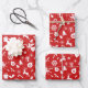 Flammes de neige, rennes et anges rouges et blancs sur ces feuilles de papier d'emballage Noël/Fêtes - série de trois. Consultez notre papier d'emballage correspondant.