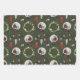 Crânes de rennes de Noël déplaisants, boule de neige crânienne et couronnes de Creepmas sur ce papier d'emballage amusant. 3 feuilles chacune avec une couleur arrière - plan différente - une de chaque vert, noir et rouge.