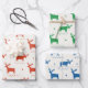 Feuilles en papier motif de rennes en bois de Noël dans des couleurs bleu vert rouge pour cadeau de vacances d'hiver.