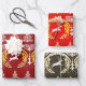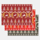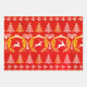 Diseño de papel de regalo con motivos navideños en color rojo y dorado