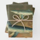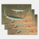 Feuille De Papier Cadeau Requins Bleus Mangeant du Poisson, Vie Marine Vint