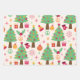 Feuille De Papier Cadeau Rétro les années 70 Super Noël Arbres Motif