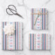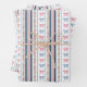 Mignons nœuds coquettes roses et bleus et fleurs avec des rayures bleues marine et roses sur ces feuilles de papier d'emballage. Lot de trois feuilles assorties. Parfait pour les baby showers, les shower de mariage et les anniversaires pour elle.