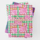 Feuille De Papier Cadeau Roses sur Motif Plaid - rose