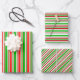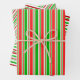Feuille De Papier Cadeau Rouge, Blanc, Vert Lignes à thème de Noël Motifs