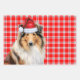 Feuille De Papier Cadeau Rough Collie Chien Rouge Plaid Noël