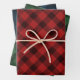Feuille De Papier Cadeau Rustique Aquarelle Plaid Motif Rouge Vert & Marine
