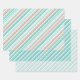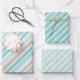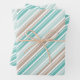 Papier d'emballage classique à bande de sucre de canne avec un motif de couleur sable et mer d'un bronzage de sable, un bleu tropical de la mer et un vert mousse de mer avec bande de sucre de canne blanc.