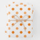 Papier enveloppant avec des pois dans les tons orange et blanc pour les vacances. Idée cadeau pour adultes et enfants.