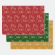 Enveloppez vos cadeaux de Noël dans un style élégant grâce à cet ensemble de papier d'emballage moderne de Noël avec script de calligraphie contemporaine et couleurs modernes : rouge, vert et or/ocre.