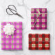 Feuille De Papier Cadeau Simple Noël Plat Rouge Et Rose À damiers