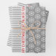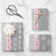 Feuille De Papier Cadeau Snowflakes, sapins, rayures kraft grises