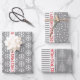 Feuille De Papier Cadeau Snowflakes, sapins, rayures kraft grises
