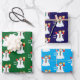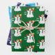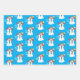 Wrapping paper sheets with cute snowmen wearing a floppy hat, red mittens and colorful scarf. The images, background and text can be personlaized. Original artwork by W.B.
