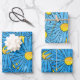 Feuille De Papier Cadeau Stylo Abstrait bleu et Motifs Aster aquarelle