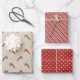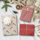 Papier d'emballage de Noël dans un style de ferme en détresse. Le design se compose d'un style avec des sucres de canne, d'un style avec des rayures rouges et d'un style avec des pois sur un arrière - plan rouge.