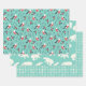 Three unique Christmasy designs all featuring the same blue teal color! Will look lovely beneath the tree having all the same complimentary colors matching. Gorgeous teal blue green backgrounds - one wrap has red and navy blue birds, one has polar bears and the other a funky unperfect hand made dotted pattern.