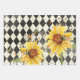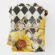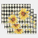 PANNEAU DE DROITE POUR LES TISSEURS OU LES CABINETS. Le papier d'emballage lourd est idéal pour dédécouper vos projets. Tournesol avec abeilles, Arlequin Noir en Crème Ephémère Découpage en Bois, également disponible en papier de tissu lourd pour l'artisanat et la décoration de meubles. Des tournesols rustiques et élégants avec des abeilles bosselées et feuillage feuillu sur un motif en diamant noir et crème Harlequin qui a été affligé. Un crépis blanc doux peint en bois rustique arrière - plan et écriture éphémère script à la main finissent le design. Peinte en aquarelle et dessinée graphiquement par Audrey Jeanne Roberts, artiste et designer de renommée internationale, copyright.