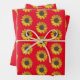 Feuille De Papier Cadeau Tournesol Floral Modèle Sur Rouge