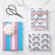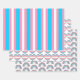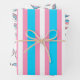 Fun gift wrap sheets in light blue, pink and white stripes, hearts and rainbows to stand for the transgender flag colors.
