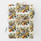 Three sheets of Christmas gift wrap. One with golden partridges in a pear tree, two turtle doves and three French Hens.