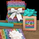 Un papier d'emballage à bande arc-en-ciel brillant avec un script décontracté de "Joyeux Anniversaire" intégré dans les bandes. Enveloppez vos surprises pour vos 50 ans dans des rayures colorées et des chiffres. Amusant pour tous les types de 50ème anniversaire.