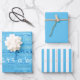Profitez de cette simple typographie écrite motif qui a : C'est un garçon! et Baby shower écrit en anglais dans 5 nuances différentes de bleu plus l'arrière - plan bleu. En plus d'un bleu solide et d'un bleu/blanc rayé deuxième et troisième feuilles.