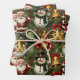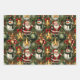 Ce papier d'emballage de Noël présente un motif répétitif de personnages festifs et d'ornements sur un arrière - plan vert foncé. Le design comprend : Jolly Santa Claus : Un Père Noël debout avec un sourire amical, agitant. Rindeer : Un renne avec un nez rouge et un sucre de canne. Snowman souriant : un bonhomme de neige portant un chapeau supérieur et une écharpe verte. Ornements heureux : Une variété de grands ornements souriants, dont une étoile dorée et une baule verte avec un design de flocon de neige. L'arrière - plan est rempli d'éléments de Noël classiques comme des feuilles saints, des baies rouges et des flocons blancs, créant un look de vacances détaillé et traditionnel.