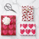 Trois designs élégants de coeurs thématiques de la Saint-Valentin enveloppant du papier pour habiller vos cadeaux. Ces motifs rouges et blancs modernes comprennent des coeurs d'aquarelle rouge et des coeurs de parties scintillant rouge. C'est un groupe de simples motifs rouges et blancs qui sont parfaits pour le présent de votre être cher.