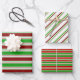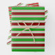 Ces motifs amusants présentent Noël et les fêtes à thème rayures colorées vert, blanc et rouge. Des feuilles de papier d'emballage festives comme celles-ci peuvent être amusantes à utiliser lors de la préparation de cadeaux donnés pour célébrer Noël.