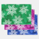 Feuille De Papier Cadeau Vert Magenta Bleu Aquarelle Abstraite Snowflakes