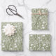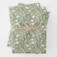 Joli vert sauge et floral blanc shower de mariage, mariage et anniversaire pour elle feuilles de papier d'emballage. Disponible en un set de trois feuilles